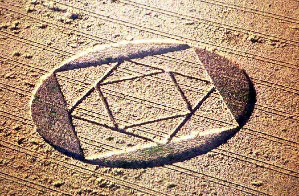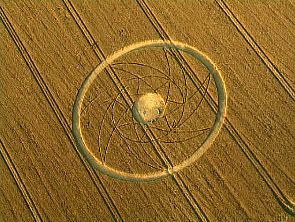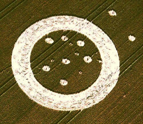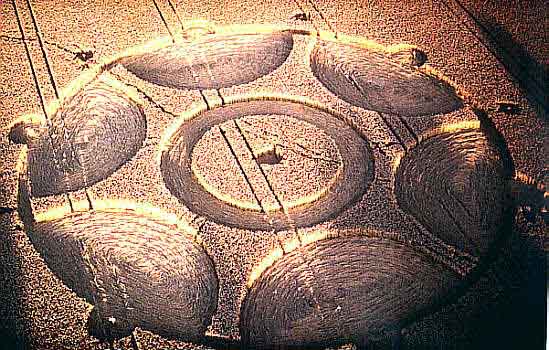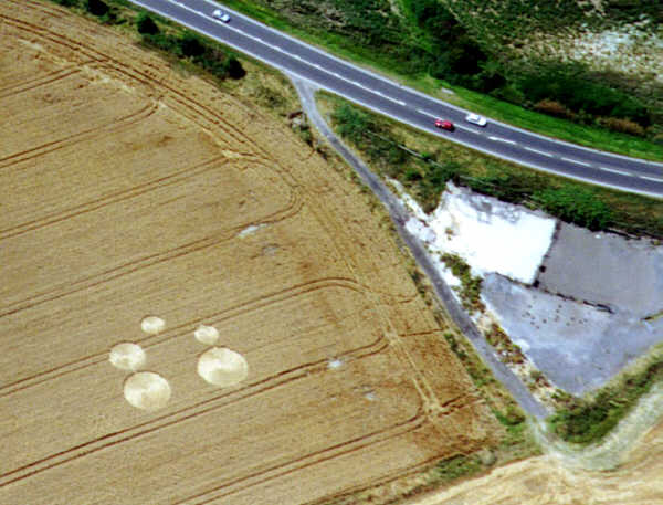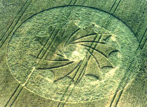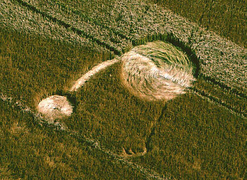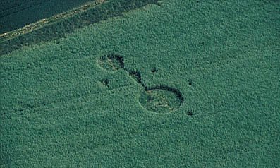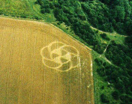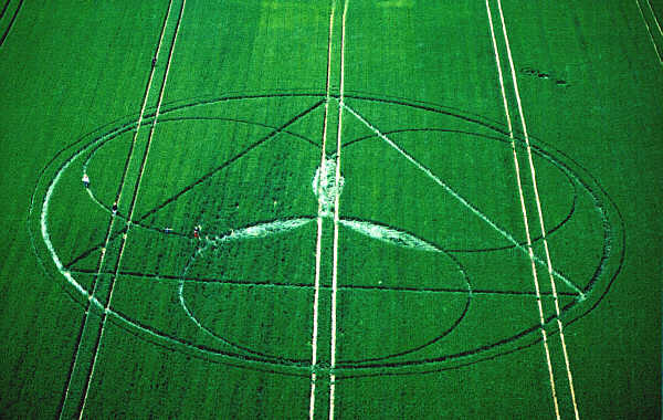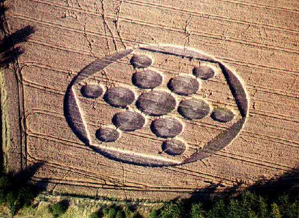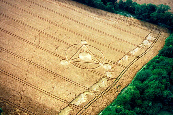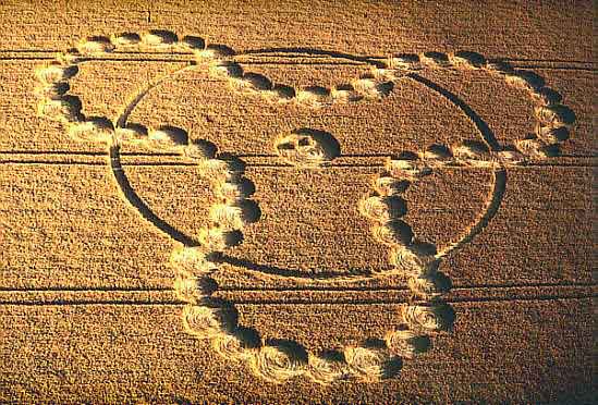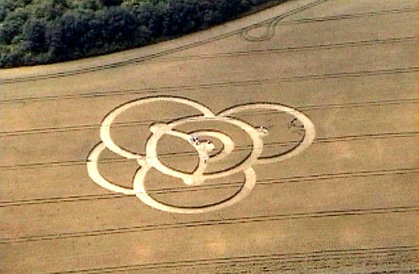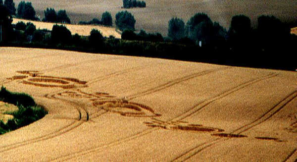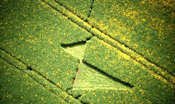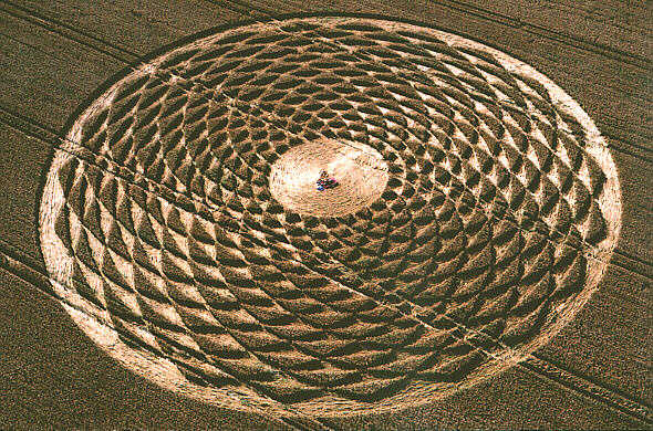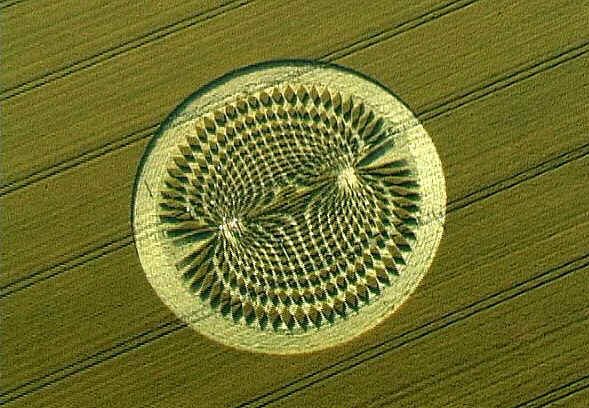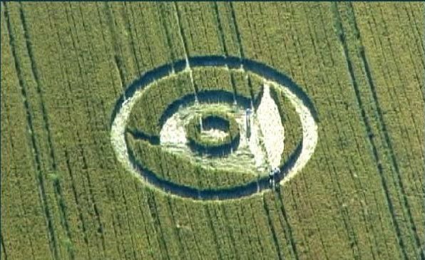 This pictures shows marks in cornfields generated by aliens using interdimensional technology.