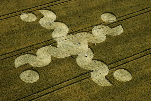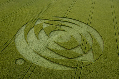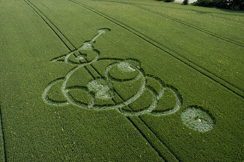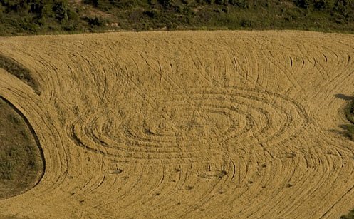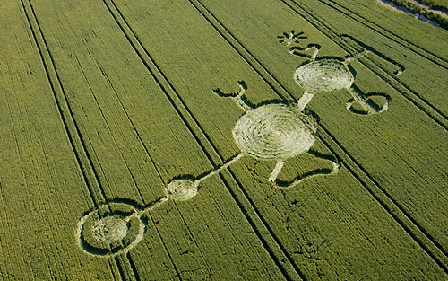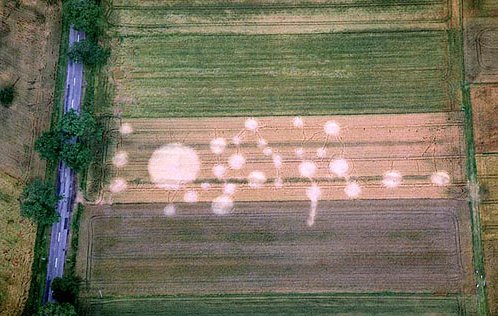 This pictures shows marks in cornfields, in most cases generated by aliens using interdimensional technology.